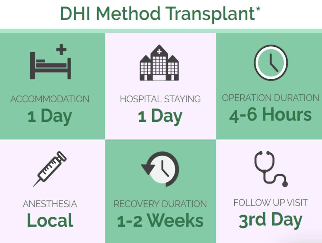 The hair for the DHI method is taken from the back of the nape or ear. Planting is done with special pencils prior to the opening of canals in the planting area. Patients benefit from the DHI method because it produces rapid and natural results.